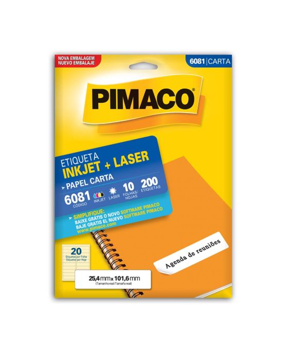 Etiqueta Adesiva Laser/jet Carta 6081 25,4x101,6 Cx C/10f Pimaco