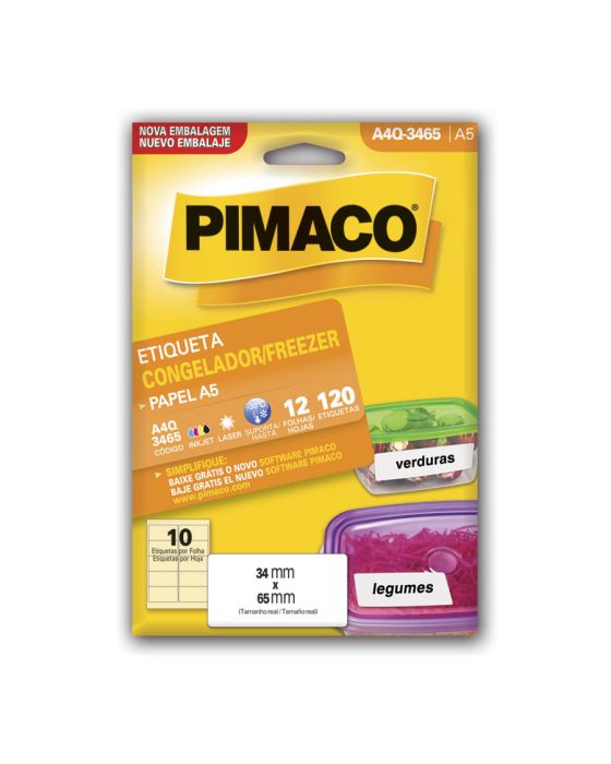 Etiqueta Adesiva Multiuso A5 Q3465 34,0x65,0 P/congelador E Freezer Cx C/12fls Pimaco