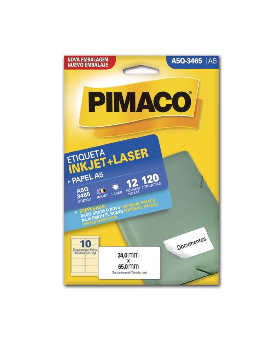 Etiqueta Adesiva Multiuso A5 Q3465 34,0x65,0 C/120un Pimaco
