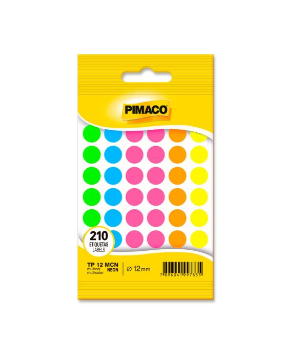 Caracteristicas:As etiquetas PIMACO podem ser amplamente utilizadas no trabalho ou em casa, sempre mantendo um alto nível de apresentação. São diversos e modelos e quantidades para suprir qualquer demanda.Detalhes:- Marca: Pimaco.- Modelo: TP-12 MCN.- Linha: Etiquetas.- Formato: Redondo.- Cor: Multicolor Neon.- Quantidade total de etiquetas: 210 etiquetas.- Quantidade por folha: 42 etiquetas.- Quantidade de folhas: 5 folhas.- Carreira: 6 fileiras com 7 etiquetas.- Tamanho da etiqueta: Ø12mm.Onde usar:- Ideal para organização de produtos, catálogos, índices, lacrar envelopes e etc.Composição:- Papel ou película de plástico transparente com adesivo acrílico aquoso.Validade Indeterminada.* As especificações podem ser alteradas sem aviso prévio ** Imagem meramente ilustrativa.