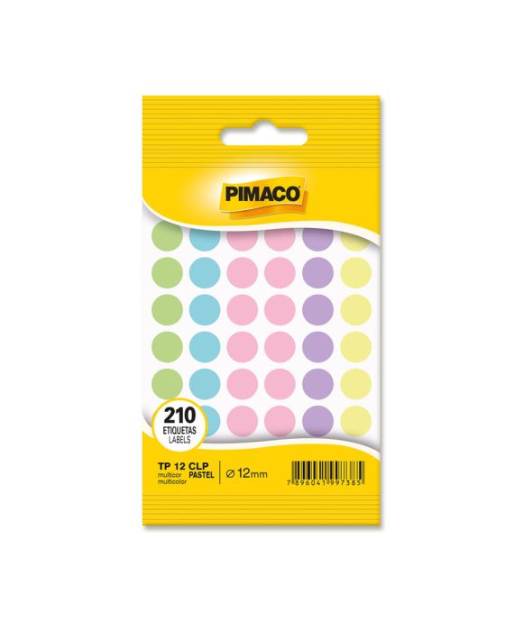 Caracteristicas:As etiquetas PIMACO podem ser amplamente utilizadas no trabalho ou em casa, sempre mantendo um alto nível de apresentação. São diversos e modelos e quantidades para suprir qualquer demanda.Detalhes:- Marca: Pimaco.- Modelo: TP-12 CLP.- Linha: Etiquetas.- Formato: Redondo.- Cor: Multicolor Pastel.- Quantidade total de etiquetas: 210 etiquetas.- Quantidade por folha: 42 etiquetas.- Quantidade de folhas: 5 folhas.- Carreira: 6 fileiras com 7 etiquetas.- Tamanho da etiqueta: Ø12mm.Onde usar:- Ideal para organização de produtos, catálogos, índices, lacrar envelopes e etc.Composição:- Papel ou película de plástico transparente com adesivo acrílico aquoso.Validade Indeterminada.* As especificações podem ser alteradas sem aviso prévio ** Imagem meramente ilustrativa.