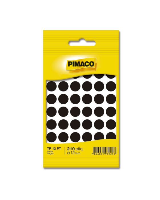 Caracteristicas:As etiquetas PIMACO podem ser amplamente utilizadas no trabalho ou em casa, sempre mantendo um alto nível de apresentação. São diversos e modelos e quantidades para suprir qualquer demanda.Detalhes:- Marca: Pimaco.- Modelo: TP-12 PT.- Linha: Etiquetas.- Formato: Redonda- Cor: Preta.- Quantidade total de etiquetas: 210 etiquetas.- Quantidade por folha: 42 etiquetas.- Quantidade de folhas: 5 folhas.- Carreira: 6 fileiras com 7 etiquetas.- Tamanho da etiqueta: Ø12mm.Onde usar:- Ideal para organização de produtos, catálogos, índices, lacrar envelopes e etc.Composição:- Papel ou película de plástico transparente com adesivo acrílico aquoso.Validade Indeterminada.* As especificações podem ser alteradas sem aviso prévio ** Imagem meramente ilustrativa.