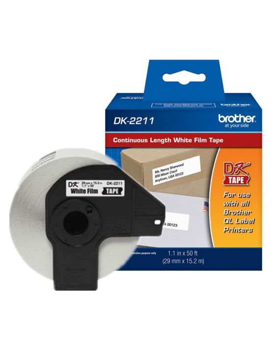Características:São etiquetas comum adesivas, ideais para identificação de objetos, pastas ou documentos, cd, redondas, etc. A linha de cartuchos DK são utilizadas nas impressoras de etiquetas da linha QL.Detalhes:- Marca: Brother;- Modelo: DK2211;- Linha: Etiquetas Térmica;- Cor: Fundo branco e impressão preta;- Tipo de fita: Contínua (Não há corte);- Tamanho: 29mm x 15,2m (2,9cm x 15,2m) (LxC);- Contém: 1 unidade do produto;- Etiqueta Adesiva.Ideais para:- identificação de objetos, pastas ou documentos, cd, redondas, etc.Compatível com: - Impressora Brother QL570 / QL580 / QL550 / QL650TD / QL700 / QL800 / QL810W / QL1050 / QL1050N / QL1060N.* As especificações podem ser alteradas sem aviso prévio ** Imagem meramente ilustrativa