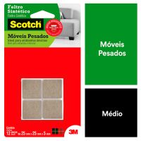 Características:O Feltro Sintético para Móveis Pesados 3M Scotch™ ajuda você a proteger a beleza do seu piso. Equipados com adesivo poderoso e feltro durável, os protetores de piso aderem sem esforço aos pés dos seus móveis e fornecem proteção duradoura contra riscos e arranhões.A linha de Feltros Sintéticos Scotch traz mais qualidade e resistência para proteger os móveis da sua casa, evitando riscos e protegendo contra batidas e deslizamentos. Com fixação rápida, prática e duradoura, eles possuem alta aderência e qualidade única da 3M™. São especialmente indicados para móveis pesados. A colagem dos Feltros Sintéticos Scotch é super forte. Ele não risca e está disponível em diversos formatos, para todos os móveis. É uma linha completa da 3M™ para proteção em sua casa ou trabalho.Detalhes:- Marca: Scotch™;- Fabricante: 3M™;- Referência: HB004262729;- Cor: Preto;- Tamanho: Grande;- Contém: 1 embalagem do produto com 12 unidades;- Antideslizante: Ajuda a estabilizar móveis e eletrodomésticos;- Não Risca: Protege e não danifica o piso;- Resistente: Durável e à prova da água;- Ambiente: Interno e externo;- Tamanho: 2,5 cm x 2,5 cm;- Alta aderência no objeto a ser colado devido a camada dupla de adesivo;- Protetor em EVA à prova d’água;- Ideal para móveis e cadeiras em ambientes com piscina ou umidade.Aplicação:- É ideal para aplicar em móveis leves, como: Cadeira, mesa e etc. para Eletrodomésticos, Mesas, Sofás e Poltronas.Modo de uso: - As superfícies devem estar limpas, secas e livres de gorduras (ceras, óleos etc);- Remover o liner protetor e aplicar pressionando contra a outra superfície.Uso:- Ideal para utilização em ambiente com água / úmidos e para evitar que os objetos se desloquem-se, evitando riscos, batidas e deslizamentos. Composição:- Liner: Papel tratado;- Dorso: EVA;- Adesivo: Adesivo Sintético.Conteúdo da embalagem: 1 Feltro Moveis Pesados Quadrado Grande 25x25mm Scotch 3m.* As especificações podem ser alteradas sem aviso prévio ** Imagem meramente ilustrativa.