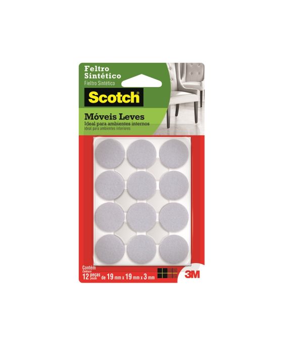 Características:O Feltro Sintético para Móveis Leves 3M Scotch™ ajuda você a proteger a beleza do seu piso. Equipados com adesivo poderoso e feltro durável, os protetores de piso aderem sem esforço aos pés dos seus móveis e fornecem proteção duradoura contra riscos e arranhões.A linha de Feltros Sintéticos Scotch traz mais qualidade e resistência para proteger os móveis da sua casa, evitando riscos e protegendo contra batidas e deslizamentos. Com fixação rápida, prática e duradoura, eles possuem alta aderência e qualidade única da 3M. São especialmente indicados para móveis leves. A colagem dos Feltros Sintéticos Scotch é super forte. Detalhes:- Marca: Scotch™;- Fabricante: 3M™;- Referência: HB004262646;- Cor: Branco;- Tamanho: Pequeno;- Formato: Redondo;- Contém: 1 embalagem do produto com 12 unidades;- Não Risca: Protege e não danifica o piso;- Resistente: Durável;- Ambiente: Interno;- Medida: 1,9cm x 1,9 X 3cm.Aplicação:- É ideal para aplicar em móveis, como: Mesas, Cadeiras, Banquetas e Pufes.Modo de uso: - As superfícies devem estar limpas, secas e livres de gorduras (ceras, óleos etc);- Remover o liner protetor e aplicar pressionando contra a outra superfície.Uso:- Ideal para evitar que os objetos se desloquem-se, evitando riscos, batidas e deslizamentos. Composição:- Liner: Papel tratado;- Dorso: Feltro Sintético;- Adesivo: Adesivo Sintético.Conteúdo da embalagem: 1 Feltro Moveis Redondo Branco Pequeno 19mm Scotch 3m.* As especificações podem ser alteradas sem aviso prévio ** Imagem meramente ilustrativa.