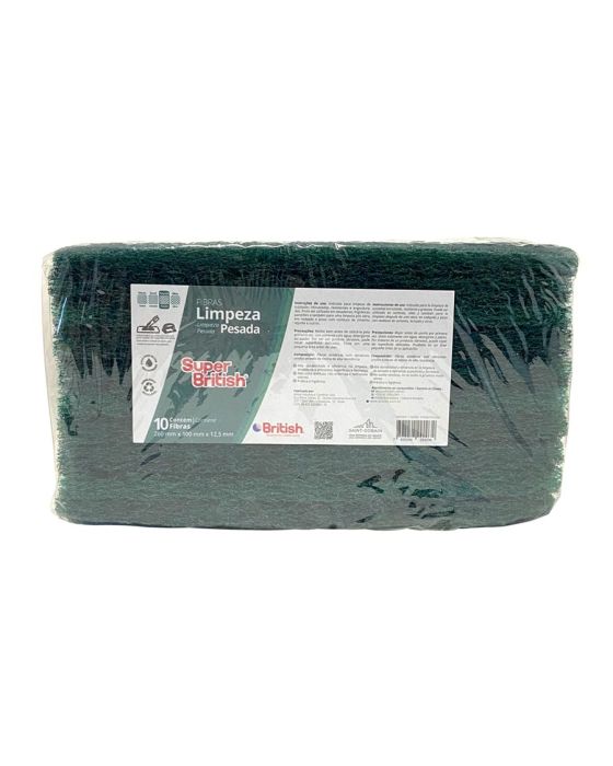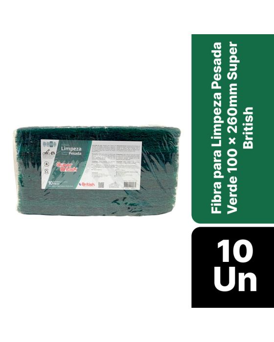 Fibra P/ Limpeza Pesada Verde C/10 100 X 260mm Super British