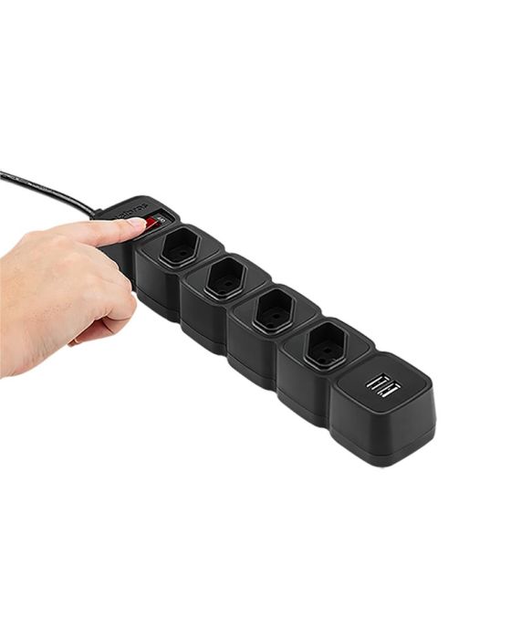 Filtro De Linha C/4 Tomadas E 2 Portas Usb Preto Epe 204 Intelbras