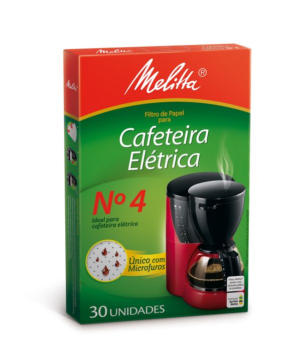 Caracteristicas:O Original Filtro Melitta® possui a exclusiva tecnologia de microfuros, esses furinhos no papel que têm o tamanho certo para deixar passar todo o aroma e sabor do seu café preferido.- Filtro de Papel para coar Café- Próprio para Cafeteira elétrica- Tamanhos: Nº4- Marca: Melita- Caixa com 30 unidades- Dimensões:- Peso Aprox: 84g* As especificações podem ser alteradas sem aviso prévio ** Imagem meramente ilustrativa.