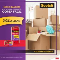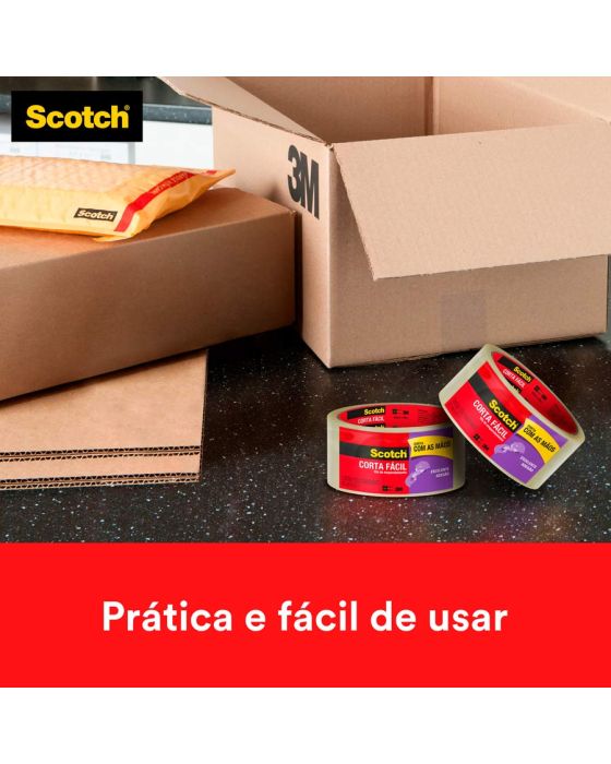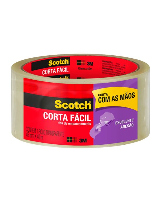 Características:Mudança? Envios? Faça-os com Scotch® Corta Fácil! Seu grande diferencial consiste na facilidade em cortar a fita apenas com as mãos, sem precisar de tesouras, estiletes e até mesmo os dentes.A Fita de Empacotamento Scotch® Corta Fácil conta com adesivo Hot Melt que, após sua aplicação, oferece ainda mais segurança à selagem. Esta fita também tem tratamento especial no dorso do filme que proporciona um desenrolar mais fácil e suave. Trabalhe mais tranquilo, ganhe tempo, evite desperdícios e retrabalhos utilizando produtos com a qualidade Scotch®.Detalhes:- Marca: Scotch™;- Fabricante: 3M™;- Modelo: Fita de Empacotamento Scotch® Corta Fácil;- Referência: HB004590855;- Linha: Fitas adesivas;- Cor: Transparente;- Contém: 1 unidade do produto;- Tamanho: 45mm x 40m (4,5cm x 40m (LxC);- Corta fácil apenas com as mãos sem precisar de outros utensílios;- Fácil manuseio, pois tem tecnologia que ajuda a fita a desenrolar mais facilmente;- Garante tranquilidade, pois seu embrulho chegará fechado ao destino.Aplicações sugeridas:- Ideal para fechar embalagens com máxima segurança.Composição:- Composição Dorso: Filme de polipropileno bi-orientado (BOPP);- Composição Adesivo: À base de resina e borracha sintética.Medidas:- Dimensões da fita: 45mm x 40m (4,5cm x 40m (LxC).Conteúdo: 1 Fita Adesiva 45mm X 40m Transparente Scotch Corta Facil 3m.* As especificações podem ser alteradas sem aviso prévio ** Imagem meramente ilustrativa.