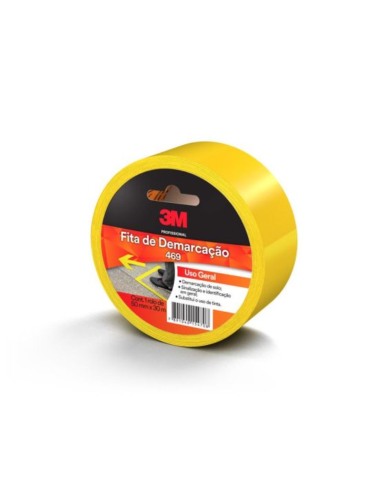 Caracteristicas:A Fita de Demarcação de Solo de Uso Geral 469 é a maneira mais prática e econômica de substituir o uso de tintas em aplicações de sinalização e demarcação em geral. Oferece grande visibilidade, boa resistência ao desgaste e fácil aplicação e remoção.- Resistente ao fluxo intenso de pessoas- Prática e flexível- Forte adesão e resistência- Boa resistência química- Boa resistência à abrasão- Resistência a temperaturas de até 76ºC- Vulnerável à ação de cetonas, hidrocarbonetos clorados e ésteres- Composição: Fita constituída de um dorso de PVC plastificado colorido coberto com adesivo a base de resina e borrachaAplicações sugeridas- Ideal para demarcar vagas, garagens, estacionamentos e organizar filas- Indicada para sinalizar portas de vidro e equipamentos de combate a incêndio- Também pode ser usada para marcação temporária de peças ou máquinas e proteção de peças, equipamentos ou produtos contra abrasãoCaracterísticas Técnicas- Espessura: 0,125 mm - Adesão ao aço: 450 gf/25mm- Resistência à tração: 5,25 kgf/25mm- Alongamento: 125%* As especificações podem ser alteradas sem aviso prévio ** Imagem meramente ilustrativa
