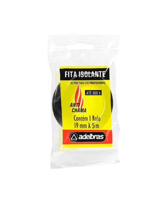 Caracteristicas:A Fita isolante anti-chamas é ideal para cabeamentos, enfaixamentos de cabos condutores e isolamento elétrico. Performance superior para aplicações com tensões de até 600V.Detalhes:- Marca: Adelbras.- Modelo: Isolante.- Linha: Fita Isolante.- Cor: Preta.- Validade: 60 dias após a fabricação (Validade impressa na embalagem do produto).Composição:- Filme de PVC auto extinguível, coberto com adesivo de borracha.Armazenagem:- Embalagem original, protegida do calor, umidade e pó.* As especificações podem ser alteradas sem aviso prévio ** Imagem meramente ilustrativa.