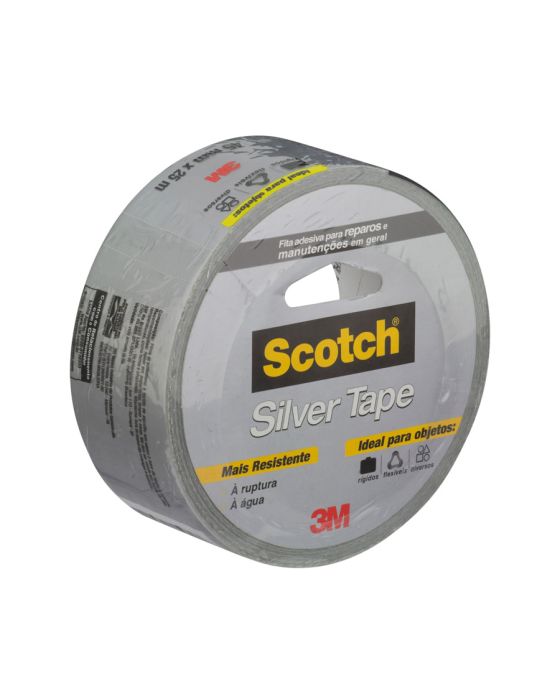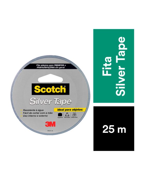 Características:A Fita Silver Tape 3M Scotch™ é ideal para reparos provisórios, fixações diversas e manutenções de forma rápida, Possui alta adesão e é resistente à água. Resistente à ruptura, esta fita é adequada para reparos e manutenção em geral. Ideal para objetos tanto rígidos quanto flexíveis.Detalhes:- Marca: Scotch™;- Fabricante: 3M™;- Modelo: Fita Silver Tape 3M™ Scotch™;- Referência: HB004557920;- Linha: Fitas adesivas;- Cor: Transparente;- Contém: 1 unidade do produto;- Tamanho: 45mm x 25m (4,5cm x 25m (LxC);- Resistente à água;- Fácil de cortar com a mão;- Uso interno e externo.Indicada para:- Vedação de dutos de ar condicionado e refrigeração;- Trabalhos de manutenção em geral;- Reparos provisórios em materiais náuticos (botes, pranchas, etc);- Enfeixamento, embalagem,empacotamento, vedação provisoria em tubulações não aquecidas, encadernação, etc.Composição:- Composição Fita de filme de polietileno na cor prata e trama de algodão com adesivo de resina e borracha;- Composição Dorso: Filme de polietileno laminado com trama de algodão;- Composição Adesivo: Resina e borracha.Propriedades físicas:- Adesão a placa de aço : 1000 gf/19 mm delargura;- Resistência à tração : 7,4 kgf/19 mm de largura;- Alongamento na ruptura : 11,0 %;- Espessura total : 0,25 mm.Medidas:- Dimensões da fita: 45mm x 25m (4,5cm x 25m (LxC).Conteúdo: 1 Fita Adesiva Silver Tape 45mm X 25m Tape Cinza 3939 3m.* As especificações podem ser alteradas sem aviso prévio ** Imagem meramente ilustrativa.