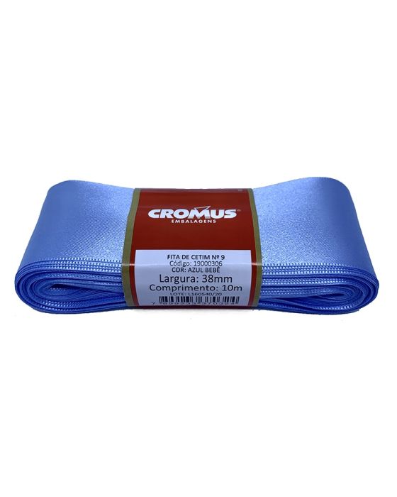 Fita Cetim Liso Azul Bebe 38mmx10m N9 Cromus