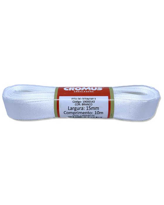 Fita Cetim Liso Branco 15mmx10m N3 Cromus