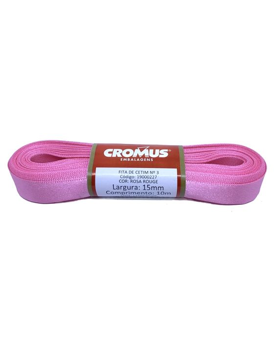 Fita Cetim Liso Rosa Rouge 15mmx10m N3 Cromus