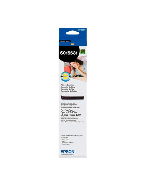 Caracteristicas:Desenhadas de acordo com especificações rigorosas, as fitas de tecido da EPSON. Proporcionam máxima durabilidade em máquinas que operam em ambientes extremos!Detalhes:- Marca: Epson.- Modelo: S015631.- Linha: Fitas Matriciais.- Rendimento (caracteres): 4 Milhões de caracteres .- Dimensões (LxPxA): 8x3x34cm.Compatível COM: - Epson LX: 350/300+II/300+.- A LX-350 SOMENTE utiliza a Fita S015631 e NÃO possui compatível no mercado.* As especificações podem ser alteradas sem aviso prévio ** Imagem meramente ilustrativa.