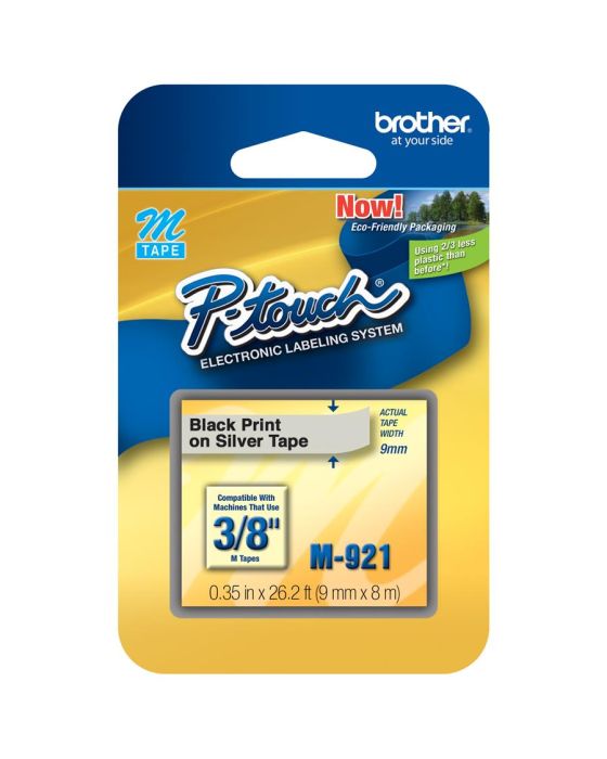 Características:As etiquetas coloridas são ótimas para identificar utensílios de cozinha, objetos pessoais, itens de escritório, pastas, documentos e o que mais você desejar. As fitas Brother são fáceis de usar e trocar e ajudam na organização do dia a dia.Detalhes:- Marca: Brother;- Modelo: M921;- Linha: Fita Rotuladora;- Cor da fita: Prata;- Cor da escrita: Preta;- Contém: 1 unidade do produto;- Fita térmica;- Durável;- Atóxica;- Compatível com os modelos: PT70, PT80 e PT90.Indicada para:- A M921 é indicada para identificar utensílios de cozinha, objetos pessoais, itens de escritório, pastas, documentos e o que mais você desejar.Recomendação:- Utilizar as etiquetas em ambientes internos, seja em casa ou no escritório, em superfícies secas e planas.Tipo de fita:- Térmica.Medidas:- Largura: 9mm (0,9cm);- Comprimento: 8m.* As especificações podem ser alteradas sem aviso prévio ** Imagem meramente ilustrativa