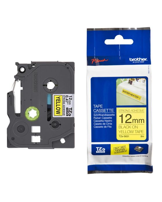 Características:As Fitas Brother TZES631 são ideais para aplicação em paredes texturizadas ou com grande acúmulo de poeira ou oleosidade e devido a sua tecnologia única de laminação que permite que seja exposta a intempéries devido a sua alta durabilidade e resistência, sendo uma fita que pode ter sua aplicação para uso doméstico ou professionalA linha TZE possui etiquetas laminadas, resistentes a temperaturas extremas, resistentes à água, abrasão e a produtos químicos, além de não desbotarem e possuírem uma película de proteção fácil de destacar.Detalhes:- Marca: Brother;- Modelo: TZES631;- Linha: Fitas Rotuladoras;- Família: Linha TZE;- Cor da fita: Amarelo;- Cor da escrita: Preto;- Tamanho: 12mm;- Contém: 1 unidade do produto;- Fita laminada com super cola;- Não desbota;- Possui alta aderência;- Durável;- Atóxica.Indicada para:- A TZES631 é ideais para serem usadas em paredes texturizadas e locais com probabilidade de acumular poeira e oleosidade.Compatibilidade:- Compatível com os modelos de rotuladores: PTH110, PTD210, PTP300BT, PTH110BK, PTE300VP, PTE110, PTE500VP, PTE550WVP, PTP700, PTP750W, PTP900W e PTP950NW.Resistência:- Temperaturas extremas (-80°C até +150°C);- A água, sol, umidade, substâncias químicas, abrasão, poeira, áreas sujeitas à chuvas e frio.Tipo de fita:- Laminada, com super cola e ecológica.Medidas:- Largura: 12mm (1,2cm);- Comprimento: 8m.* As especificações podem ser alteradas sem aviso prévio ** Imagem meramente ilustrativa.