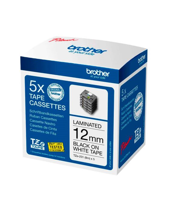 Fita Rotuladora Brother 12mmx8m Branca Escrita Preta M231m5 C/5 Unidades