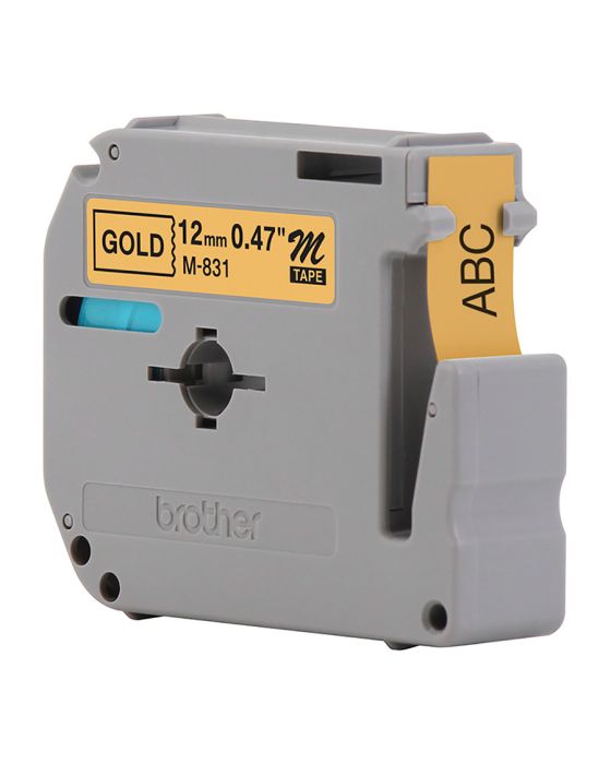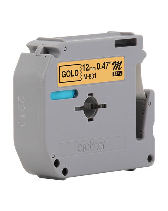Caracteristicas:As etiquetas adesivas da Brother são ideais para etiquetar utensílios domésticos, materiais escolares, pastas, documentos e arquivos em geral. Este modelo, com a fita na cor ouro e a escrita em preto, vai deixar os itens etiquetados ainda mais elegantes. As fitas deixam a organização do dia dia muito mais prática.Detalhes:- Marca: Brother.- Modelo: M831.- Linha: Fita Rotuladora.- Cor da fita: Dourada.- Cor da escrita: preta.- Contém: 1 unidade do produto.- Fita não laminada.- Fita térmica- Não desbota.- Possui alta aderência.- Durável.- Atóxica.- Compatível com os modelos: PT70, PT80 e PT90.Indicada para:- A TZES211EU é ideal para ser aplicada em paredes texturizadas ou com grande chance de acúmulo de poeira ou oleosidade.Resistência:- Temperaturas extremas (-80°C até +150°C).- A água, sol, umidade, substâncias químicas, abrasão, poeira, áreas sujeitas ao frio.Tipo de fita:- Térmica.Medidas:- Largura: 12mm (1,2cm).- Comprimento: 8m.* As especificações podem ser alteradas sem aviso prévio ** Imagem meramente ilustrativa