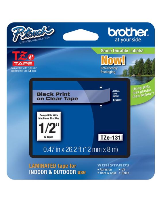 Características:As fitas Brother TZE131 possui 12mm com escrita preta e etiqueta transparente permite uma identificação discreta, e são indicadas para etiquetagem geral em superfícies planas e lisas, contam com uma tecnologia única de laminação o que torna a fita durável e resistente que podem ser expostas a diferentes temperaturas permitindo que você crie etiquetas para diversos tipos de aplicação, seja para uso doméstico ou profissional!A linha TZE possui etiquetas laminadas, resistentes a temperaturas extremas, resistentes à água, abrasão e a produtos químicos, além de não desbotarem e possuírem uma película de proteção fácil de destacar.Detalhes:- Marca: Brother;- Modelo: TZE131;- Linha: Fita Rotuladora;- Família: Linha TZE;- Cor da fita: Transparente;- Cor da escrita: Preta;- Tamanho: 12mm;- Contém: 1 unidade do produto;- Fita laminada;- Não desbota;- Possui alta aderência;- Atóxica;- Resistente. Indicada para:- A TZE131 é indicada para superfícies lisas e planas.Compatibilidade:- Compatível com os modelos de rotuladores: PPTH110, PTD210, PTP300BT, PTH110BK, PTE300VP, PTE110, PTE500VP, PTE550WVP, PTP700, PTP750W, PTP900W e PTP950NW.Resistência:- Temperaturas extremas (-80°C até +150°C);- A água, sol, abrasão e produtos químicos.Tipo de fita:- Laminada e ecológica.Medidas:- Largura: 12mm (1,2cm);- Comprimento: 8m.* As especificações podem ser alteradas sem aviso prévio ** Imagem meramente ilustrativa.