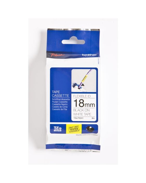 Características:As Fitas Brother TZEFX241EU são ideais para a identificação de cabos, fios, conectores elétricos e outros objetos com diâmetro pequeno, com tecnologia e laminação única e flexível são resistentes e duráveis que podem ser expostas a condições extremas e outras condições sem que ela desbote, além disso possui alta aderência, sendo um produto ideal para prestadores de serviços elétricos e de telefonia.A linha TZE possui etiquetas laminadas, resistentes a temperaturas extremas, resistentes à água, abrasão e a produtos químicos, além de não desbotarem e possuírem uma película de proteção fácil de destacar.Detalhes:- Marca: Brother;- Modelo: TZEFX241EU;- Linha: Fitas Rotuladoras;- Família: Linha TZE;- Cor da fita: Branco;- Cor da escrita: Preto;- Tamanho: 18mm;- Contém: 1 unidade do produto;- Fita laminada;- Não desbota;- Possui alta aderência;- Durável;- Atóxica.Indicada para:- A TZEFX251EU conta uma tecnologia própria para identificar superfícies cilíndricas, tais como: cabos e fios, encanamentos e outras superfícies tubulares, tubo de teste, conectores elétricos, etc.Compatibilidade:- Compatível com os modelos de rotuladores: PTE500, PTE550WVP, PTP700, PT1880, PT9700PC, PT9800PCN, PTP900W e PTP950NW.Resistência:- Temperaturas extremas (-80°C até +150°C);- A água, sol, umidade, substâncias químicas, abrasão, e poeira.Tipo de fita:- Laminada e ecológica.Medidas:- Largura: 18mm (1,8cm);- Comprimento: 8m.* As especificações podem ser alteradas sem aviso prévio ** Imagem meramente ilustrativa.