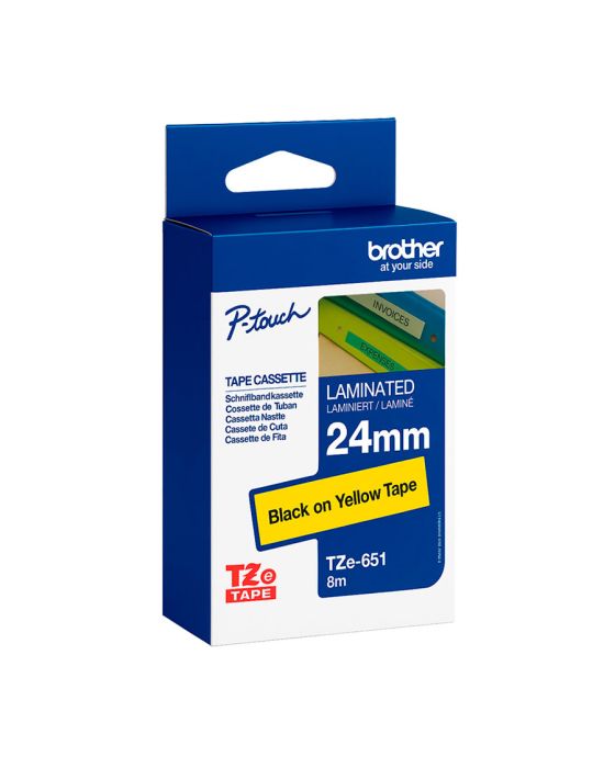 Fita Rotuladora Brother 24mmx8m Amarela Escrita Preta Tze651