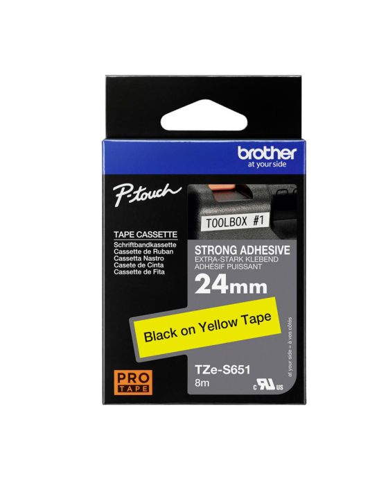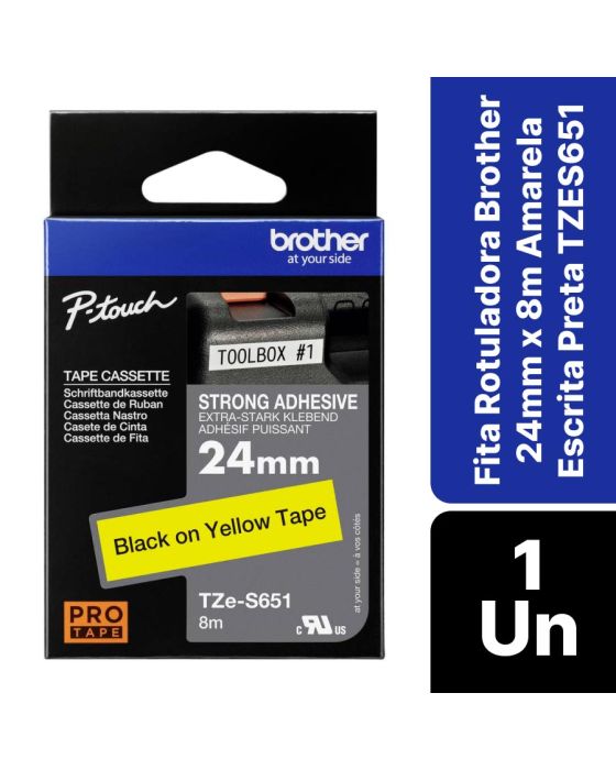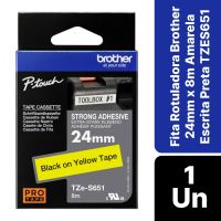 Fita Rotuladora Brother 24mmx8m Amarela Escrita Preta Tzes651