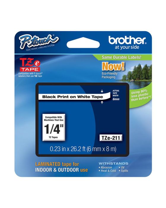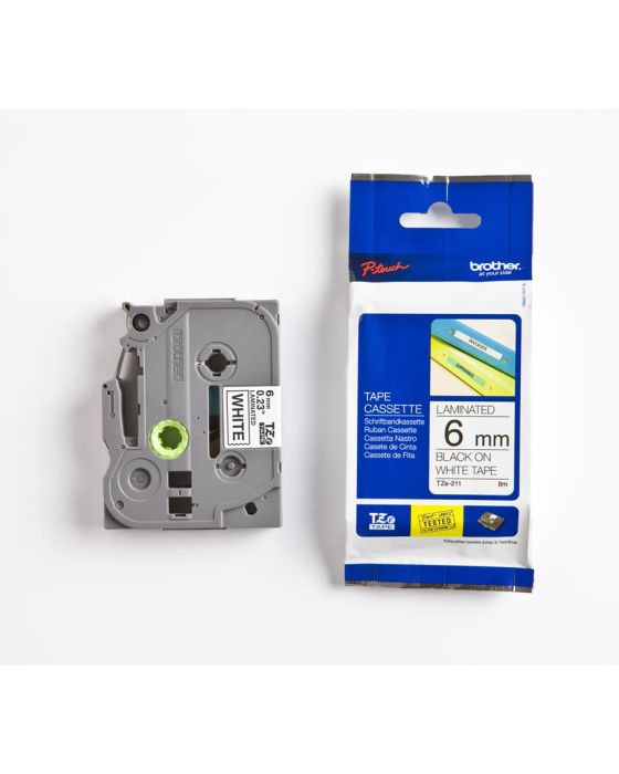 Características:As Fitas Brother TZE211 com 6mm são ideais para superfícies planas e lisas, possuem tecnologia única laminada o que a torna resistente e durável, possuem alta aderência são fáceis de manuseio e ideais para aplicação doméstica e profissional.A linha TZE possui etiquetas laminadas, resistentes a temperaturas extremas, resistentes à água, abrasão e a produtos químicos, além de não desbotarem e possuírem uma película de proteção fácil de destacar.Detalhes:- Marca: Brother;- Modelo: TZE211;- Linha: Fita Rotuladora;- Cor da fita: Branco;- Cor da escrita: Preto;- Contém: 1 unidade do produto;- Fita laminada;- Não desbota;- Possui alta aderência;- Durável;- Atóxica.Indicada para:- A TZE211 é ideal para ser utilizada em superfícies planas e lisas.Compatibilidade:- Compatível com os modelos de rotuladores: PTH110, PTD210, PTP300BT, PTH110BK, PTE300VP, PTE110, PTE500VP, PTE550WVP, PTP700, PTP750W, PTP900W e PTP950NW.Resistência:- Temperaturas extremas (-80°C até +150°C);- A água, sol, umidade, substâncias químicas, abrasão, poeira, áreas sujeitas ao frio.Tipo de fita:- Laminada e ecológica.Medidas:- Largura: 6mm (0,6cm);- Comprimento: 8m.* As especificações podem ser alteradas sem aviso prévio ** Imagem meramente ilustrativa.