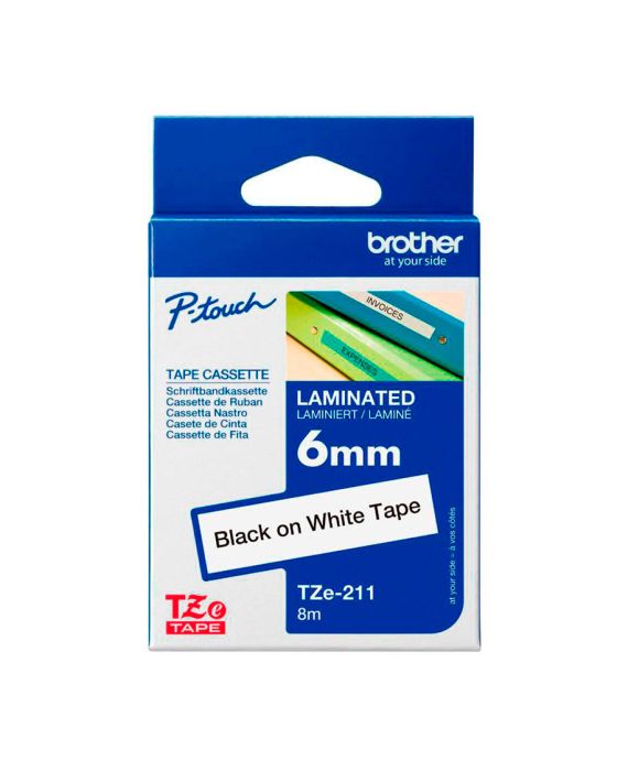 Fita Rotuladora Brother 6mmx8m Branca Escrita Preta Tze211