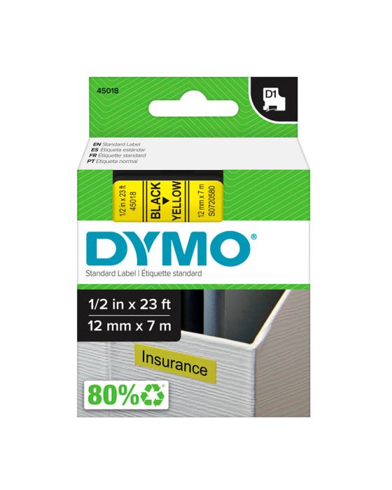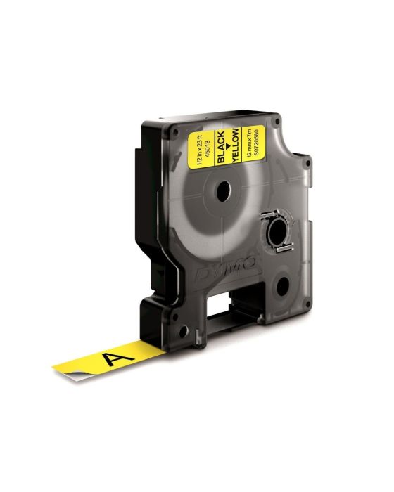 Caracteristicas:Perfeita para identificação de cadernos, pastas, armários, livros, ferramentas, quadros de força, remédio, materiais de limpeza, albúns fotográficos, vídeos, cds, arquivos, crachás, disquetes, cabos, telefones, prateleiras e onde mais você precisar.Detalhes: - Marca: Dymo.- Modelo: 45018- Linha: Fita rotuladora- Cor da Letra: Preta- Cor da Fita: Amarela- Largura: 12mm- Comprimento: 7m- Sistema pré corte easy peel, facilita a aplicação da etiqueta- Fita auto-adesiva com impressão preta sobre a fita branca- Com forte poder de adesão desde que aplicada sobre superfície limpa e seca- Material flexivel e impermeável - Com impressão térmica direta - A fita de poliéster deve ser usada longe do calor excessivo e evitar exposição direta do sol- Compatível com os modelos: Fita tipo D1, é utilizada em Rotuladores da linha profissonal (LM160P)- Garantia: 3 meses* As especificações podem ser alteradas sem aviso prévio ** Imagem meramente ilustrativa.