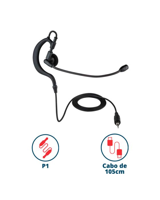 Características:O fone de ouvido HC 20 (Tipo C) possui encaixe confortável para uso corporativo, confere discrição e facilidade por permitir o uso das mãos durante a comunicação.- Fone de ouvido de encaixe “C”- Microfone direcionável e maleável- Design anatômico e confortável- Comprimento do cabo de 105cm- Engates resistentes- Próprio para rádios RC 4002/4102- Próprio para os telefones da família TS 51- Trabalhe com as mãos livres (Hands-free)Especificações técnicas- Potência do alto-falante: 100mW- Impedância do alto-falante: 32R- Sensibilidade do microfone: -42 +/- 3dB @ 1kHz- Temperatura de operação do fone: -20°C até 60°C- Peso: 21g- Dimensões microfone: 13,3cm- Comprimento do cabo: 105cm- Tipo de engate: Reto- Cor: Preto- Garantia: 3 meses- Conteúdo da embalagem: 1 fone.* As especificações podem ser alteradas sem aviso prévio ** Imagem meramente ilustrativa