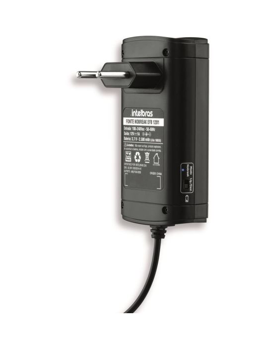 CaracterísticasMantenha seus equipamentos ligados mesmo na falta de energia com a fonte nobreak EFB 1201.Indicada para dispositivos que operam em tensão 12Vcc com consumo de até 1A, a fonte EFB 1201 oferece alimentação de forma confiável, com proteções elétricas contra as variações da rede, e uma bateria interna para manter o seu equipamento ligado mesmo nas situações de falta de energia.- Multiuso: pode ser utilizada em cenários de CFTV, redes, controle de acesso e automação- Função DC start: religamento automático da fonte nobreak mesmo na ausência de energia elétrica- Pronto para usar – inclui bateria de lítio de 2.500 mAh- Saída 12 V 1 A com conector P4- Proteção contra curto-circuito, sobrecarga e sobretensãoEspecificações técnicasEntrada- Tensão nominal: 100 ~ 240Vca (bivolt automático)- Máxima variação da tensão: 90 ~ 263Vca- Corrente: 0,3A máximo (com tensão e cargas nominais)- Frequência da rede elétrica: 50 – 60Hz- Máxima variação na frequência da rede elétrica: 47 – 63HzSaída- Tensão nominal: 12,0Vcc- Variação de tensão: 11,2 – 12,8Vcc- Corrente Mínima: 0,0A / Máxima: 1,0A- Potência: Sem carga: 0,3W máximo / Carga nominal: 12,0W- Ripple e ruído: 120mV (pico a pico)* As especificações podem ser alteradas sem aviso prévio ** Imagem meramente ilustrativa.