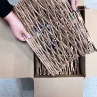 A máquina adota uma técnica de corte exclusiva para transformar caixas de papelão ondulado em um material de enchimento de embalagem de almofada macia e volumosa à prova de choque.