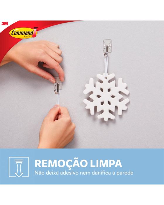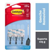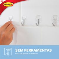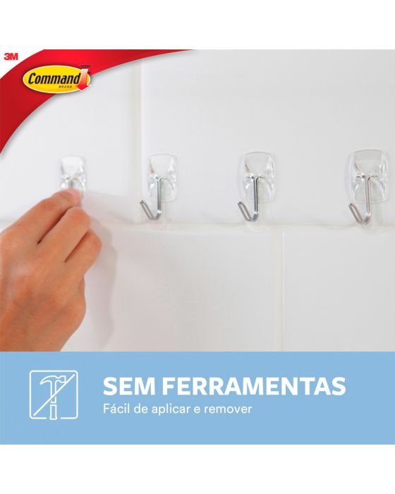 Caracteristicas:O Gancho Adesivo para Utensílios 3M™ Command® é a solução ideal para organizar sua cozinha e área de serviço do seu jeito, de forma prática, sem sujeira e sem furos na parede. Faça você mesmo em minutos e remova quando quiser, sem estragar sua parede.Sem deixar resíduos e sujeira, o Gancho 3M™ Command™ Utensílios Transparente pode ser aplicado em várias superfícies, assim como em áreas mais úmidas da casa. Versátil e discreto, é ideal para quem quer deixar à mostra apenas o que mais importa: sua decoração.Esqueça os pregos, parafusos ou tachas. O Gancho 3M™ Command™ Utensílios Transparente é muito mais fácil e rápido de pendurar! Ele possui adesão firme em muitas superfícies, como pinturas, madeiras, azulejos e muitas outras. Além disso, pode ser removido sem deixar furos, marcas ou resíduos. Está no tamanho certo para que você mostre apenas o que mais importa: a sua decoração e não como ela foi colocada no lugar.Detalhes:- Marca: Command®;- Fabricante: 3M;- Modelo: Gancho Adesivo para Utensílios 3M™ Command™;- Referência: HB004270532- Linha: Prendedores;- Cor: Transparente;- Contém: 1 embalagem com 3 unidades do produto;- Firme e seguro: cada gancho suporta até 225 g;- Sem ferramentas: fácil de aplicar e remover;- Remoção limpa: não deixa adesivo nem danifica a parede.Como usar:- Para aplicar estes ganchos de parede, limpe a parede com álcool e um pano seco. Não use produtos de limpeza, aerossóis ou toalhinhas de limpeza, pois elas deixam um resíduo escorregadio que impede a aderência.;- Separe as tiras e remova o recobrimento preto. Depois, pressione a tira diretamente sobre a parede que você quer colocar o seu gancho e pressione ao longo de toda a tira durante 30 segundos;- Remova o recobrimento azul e pressione firmemente durante 30 segundos. Lembre-se que quanto maior a pressão, mais forte será a aderência. Espere por uma hora antes de pendurar qualquer coisa no gancho; dessa maneira, a união adesiva atingirá sua máxima resistência;- Para remover, segure o gancho suavemente com seus dedos sem pressionar. Lembre-se que você não deve puxar as tiras para você, pois isso danificaria a parede. Faça-o sempre para baixo, o mais devagar possível;- Pressione com o polegar a tira grudada na parede e com a outra mão puxe lentamente para baixo esticando-a até atingir os 30 centímetros ou até que a tira desgrude da parede.Aplicações sugeridas- É indicado para decoração fácil e rápida sem causar danos na parede.Material- Composição do produto: Gancho: polietileno e aço inoxidável;- Tira adesiva: fita de polietileno com adesivo à base de borracha;Medidas:- - Dimensões da base (AxLxP): 2,7 x 2 x 0,3cm;- Dimensões com gancho (AxLxP): 4 x 2x x 1,5cm;- Validade: 2 anos. Conteúdo da embalagem: Três ganchos transparentes e quatro adesivos transparentes Command.ATENÇÃO! NÃO PENDURE QUADROS EM GANCHOS.* As especificações podem ser alteradas sem aviso prévio ** Imagem meramente ilustrativa.