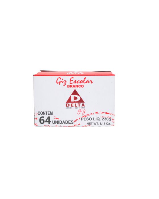 Características:A Linha DELTA GIZ foi a primeira criada pela Delta Artigos Escolares, onde iniciamos nossa fabricação com o giz para quadro negro. Hoje, o nosso giz é o mais utilizado em todo território nacional e possui qualidade comprovada por professores e alunos. Destaque especial para o giz escolar DELTA MASTER plastificado, um produto com película plástica que não suja as mãos, não solta pó, é antialérgico e muito resistente.Detalhes:- Marca: Delta.- Modelo: 0002- Linha: Giz de Gesso.- Tipo de giz: Escolar.- Cor: Branco.- Contém: 1 caixa com 64 giz de gesso.- Tamanho: 8,2 x 1,1 cm (CxD).- Giz escolar branco para quadro negro.- Não tóxico.Composição e informações sobre os ingredientes:- Composição: Gesso.- Ingredientes que contribuam para o perigo: Não há componentes acima das concentrações que oferecem perigo.* As especificações podem ser alteradas sem aviso prévio ** Imagem meramente ilustrativa