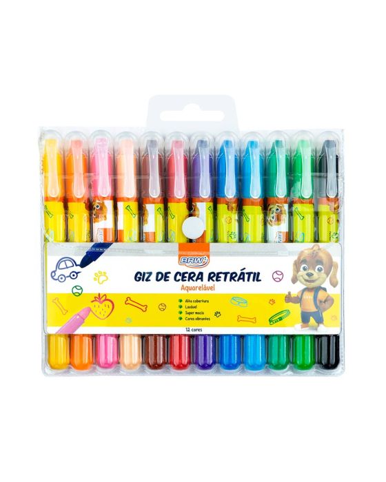 Giz De Cera 12 Cores Retratil Aquarelavel Gz1204 Brw