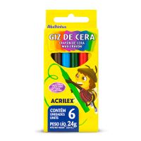 Caracteristicas:Foi desenvolvido para trabalhos infantis, ajudando a criança no aprendizado da escrita e no desenvolvimento da sua coordenação motora e de sua criatividade através da pinturaDetalhes:- Marca: Acrilex.- Modelo: 09006.- Linha: Giz de cera.- Cores: 6 cores.- Contém: 1 unidade do produto com 6 cores mistas.- Não tóxico.- fabricado com ceras de alta qualidade, proporcionando traço macio e cobertura de grandes áreas sem esforço.- Não mancha as mãos.- Giz Fino. Ideal para:- É ideal para o uso na Pré-Escola e em trabalhos escolares diversos.- Ideal para desenhar, escrever e pintar sobre papel, cartolina, papel cartão e também para trabalhos com acabamento artístico.Aplicação:- Para desenhar e pintra sobre papel, papel cartão e cartolina.Composição:- Ceras, Cargas, Minerais Inertes e Pigmentos.Conservação: - Frágil, evite quedas e choques.- Evite a exposição direta aos raios solares e temperaturas acima de 45ºC, pois o produto pode sofrer alterações.- Armazenar em local seco e ventilado.Medidas: Dimensões: 9 cm altura x 8mm diâmetro.ATENÇÃO! PRODUTO NÃO RECOMENDAVÉL PARA CRIANÇAS DE ATÉ 3(TRÊS) ANOS, POR CONTER PARTE(S) PEQUENA(S) QUE PODE(M) SER ENGOLIDA(S) OU ASPIRADA(S).* As especificações podem ser alteradas sem aviso prévio ** Imagem meramente ilustrativa.