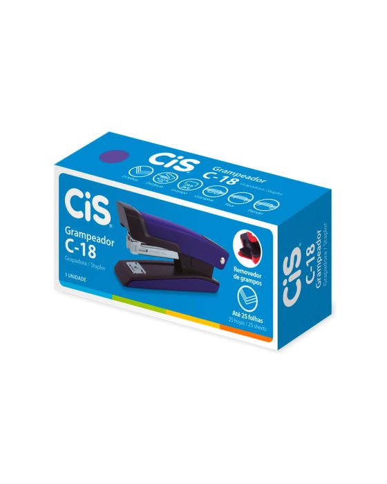 Caracteristicas:- Marca: CiS- Modelo: Grampeador C-18- Cor: Preto- Quantidade: 1 unidade- Medidas: 12 x 3,7 x 6cm (CxLxA)- Grampeia até 25 folhas- Grampo 26/6 e 24/6- Profundidade para o papel: 52mm.- Com removedor de grampos.- Funções: grampear, fixar, prender.- Estrutura metálica * As especificações podem ser alteradas sem aviso prévio ** Imagem meramente ilustrativa