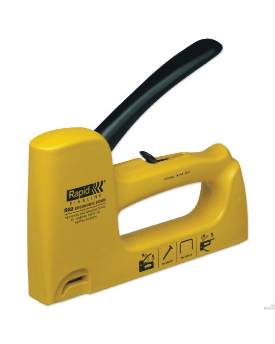 Caracteristicas: - O grampeador R83 conta com um design arrojado e ergonômico, assim como grande capacidade para grampos de arame fino e pregos. - É Ideal para trabalhos artesanais pesados, reparos residenciais, hobby, fixação de têxteis, lonas, peles, molduras, redes, etc. - Tipo de grampo: 13 - Espessura do grampo: 6-14 mm - Tipo de prego: 300 - Capacidade: 156 grampos ou 90 pregosGrampo referente a esse item, consultar os IDS: 4811(13/6) e 4812(13/8) * As especificações podem ser alteradas sem aviso prévio ** Imagem meramente ilustrativa.