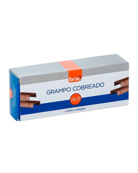 Características:Os Grampos Cobreados 26/6 BRW são ideais para agrupar e fixar de forma rápida e eficiente os documentos dos mais diversos tipos. Seu uso é indicado em escritórios, salas de aula, gráficas e até mesmo ambientes domésticos!É produzido com arame de aço revestido, o que proporciona uma barreira isolante e anticorrosiva, potencializa sua resistência e impede o surgimento de ferrugem. Com alta durabilidade, os grampos são extremamente resistentes à oxidação e contam com pontas cortantes. Desenvolvido para uso em grampeadores, possuem perfuração de até 20 folhas de 75 g/m2, ocorrendo variações conforme gramatura do papel.Detalhes:- Marca: BRW;- Referência: GR5001;- Linha: Grampos;- Tipo: Galvanizado;- Tamanho: 26/6;- Contém: 1 embalagem com 5.000 unidades do produto;- Alta durabilidade e resistência;- Para até 20 folhas de 75 g/m2*;- Aço revestido proporcionando barreira isolante e anticorrosiva.Fabricado na China | Validade: Indeterminada.Composição: - Fabricado em aço galvanizado.Medidas:- Dimensões da embalagem: 10,7 x 4,2 x 2,7cm (CxLxA);- Peso: 138g.* A gramatura das folhas pode influenciar na capacidade de perfuração.* As especificações podem ser alteradas sem aviso prévio ** Imagem meramente ilustrativa.
