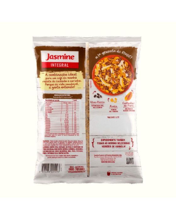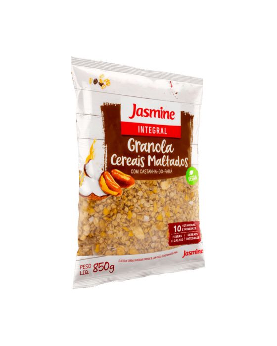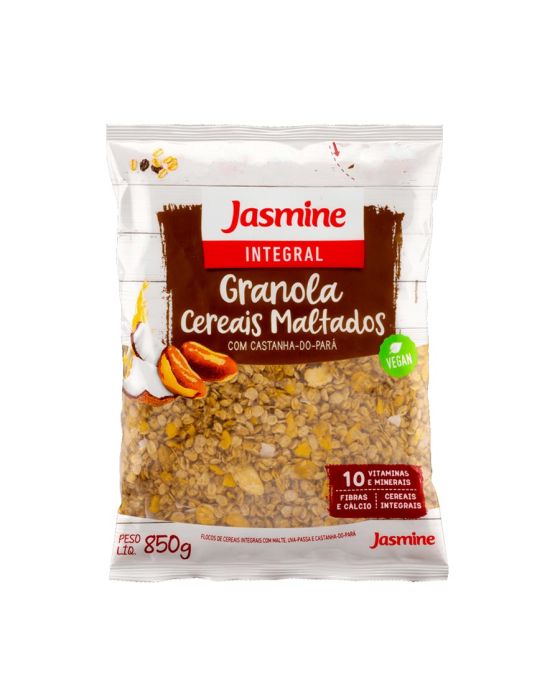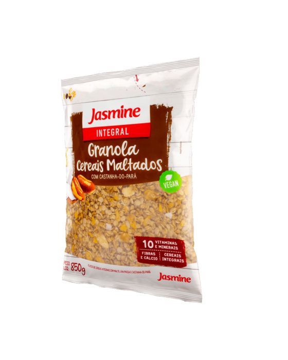 Caracteristicas:A Granola Cereais Maltado Jasmine é a combinação ideal para um café da manhã repleto de cuidado e carinho. Porque de vida saudável a gente entende!Detalhes:- Marca: Jasmine.- Modelo: Granola Cereais Maltados.- Linha: Integral.- Peso: 850g.- Ingredientes: Flocos de aveia integral, extrato de malte, flocos de cereais, flocos de milho integral, castanha-do-Pará, Fibra de trigo, Óleos vegetais (milho, e ou girassol e ou algodão), Uva-passa, Coco, Maltodextrina, mix de vitaminas e minerais (cálcio, vitaminas C, B3, E, Zinco, vitaminas B2, B6, B1, B5, A e D) e Gergelim.- Com castanha-do-Pará.- Produto vegano.- Embalagem Econômica.- Baixo teor de gorduras saturadas- 0% gordura trans- Possui 11 vitaminas e minerais.- fonte de fibras e cereis integrais.- Contém: 1 embalagem com 850g.Industria Brasileira.Modo de conservação:- Após aberto, mantenha o pacote vedado para conservar o sabor e a crocância.- Conservar em local seco e arejado.* ALÉRGICOS: CONTÉM AVEIA, CASTANHA-DO-PARÁ E DERIVADOS DE TRIGO E DE CEVADA. PODE CONTER CENTEIO, AMÊNDOA, AMENDOIM, CASTANHA-DE-CAJU, AVELÃ, MACADÂMIA, NOZ, PECÃ, PISTACHE, PINOLI, CASTANHAS E SOJA.** CONTÉM GLÚTEN. O GLÚTEN É PREJUDICIAL Á SAÚDE DOS DOENTES CELÍACOS.* As especificações podem ser alteradas sem aviso prévio ** Imagem meramente ilustrativa.