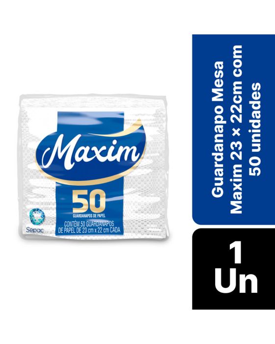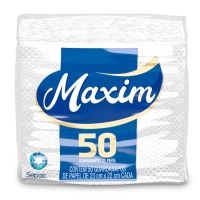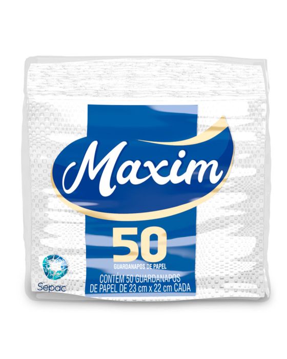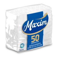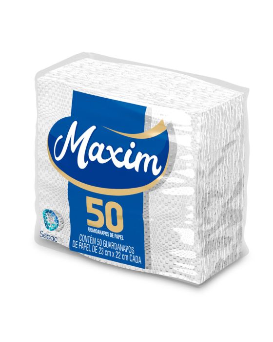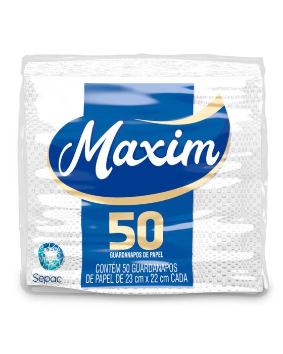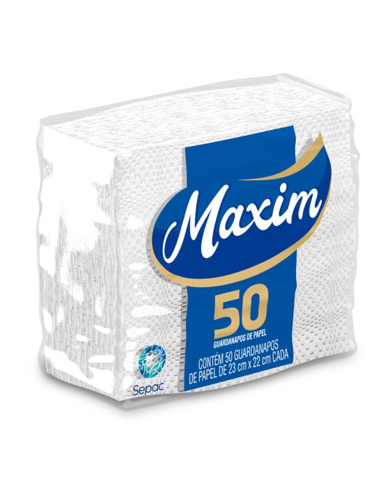 Características:Composta por guardanapos de papel, a linha Maxim foi desenvolvida pensando no seu bem-estar e de toda a família. A linha de papéis Maxim possui alta capacidade de absorção e resistência, proporcionando mais qualidade e bem-estar para o seu dia a dia.Detalhes:- Marca: Maxim;- Fabricante: Sepac;- Linha: Guardanapo;- Tipo: Mesa;- Folhas: Simples;- Cor: Branco;- Tamanho: 23 x 22cm cada folha;- Quantidade de folhas: 50 folhas;- Contém: 1 embalagem com 50 unidades do produto;- Alta absorção;- Resistente;- Embalagem com picote para destacar e abrir;- Segurança para o manuseio de alimentos;Indústria Brasileira. | Validade: Indeterminada.Ideal para:- Ideal para mesas de buffets, restaurantes, secar comidas gordurosas como batatas fritas e empanados e secar líquidos.Composição:- Fabricado com 100% fibras celulósicas.Medidas:- Dimensões da toalha (cada): 23 x 22cm;- Dimensões da embalagem: 11,5 x 11 x 5cm (CxLxA);- Peso: 231g.* Possui controle biológico: Método que permite remoção, redução e inibição do crescimento de microrganismos patógenos ou que causam deterioração do produto.* As especificações podem ser alteradas sem aviso prévio ** Imagem meramente ilustrativa.