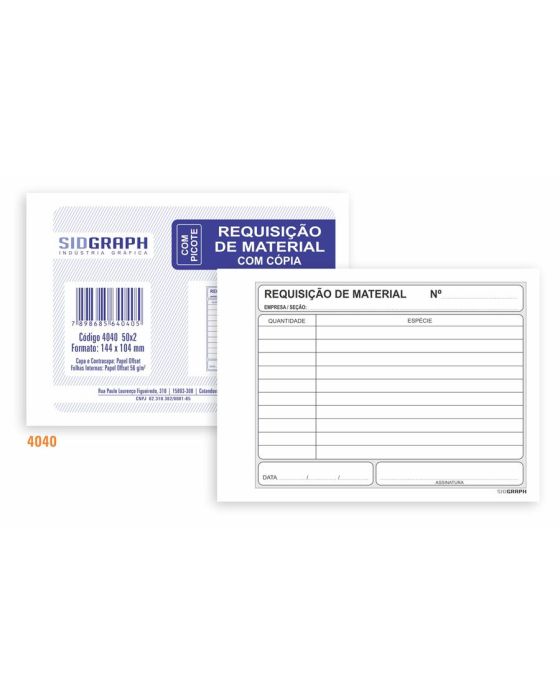 Guia Comercial Requisicao Material 104x144mm 2 Vias 50fls Sidgraph