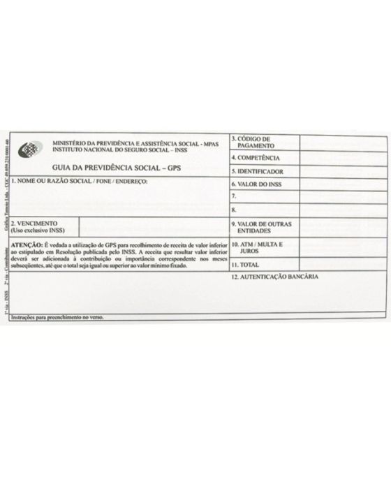 Guia Inss/gps Em Carne 2 Vias Tamoio
