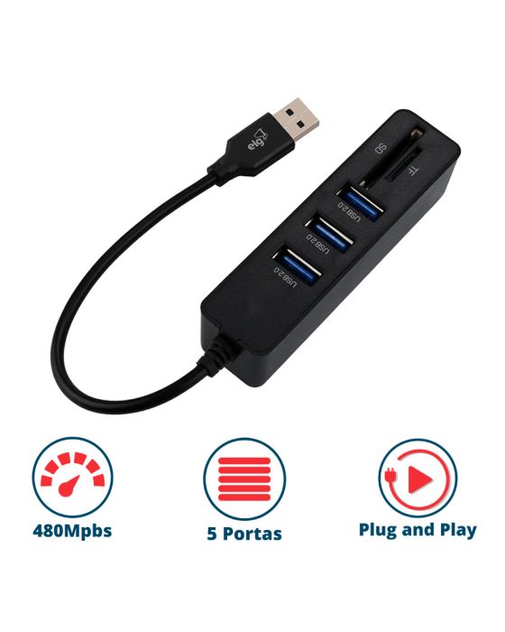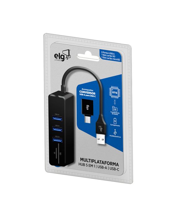 Hub Usb-a 5 Portas C/ Conversor Usb-c Hub51sd-v2 Elg