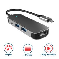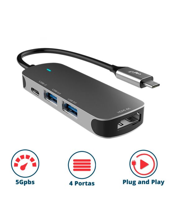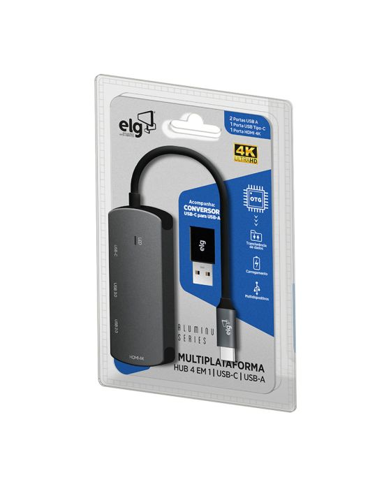 Hub Usb-c 4 Portas C/ Conversor Usb-a Hub41hd-v2 Elg