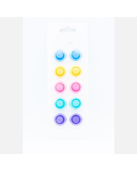 Caracteristicas:- Cartela com 10 unidades (2 rosa, 2 azul, 2 laranja, 2 lilas, 2 verde)- Cores translucidas- Diâmetro: 2cm- Excelente fixação* As especificações podem ser alteradas sem aviso prévio ** Imagem meramente ilustrativa.
