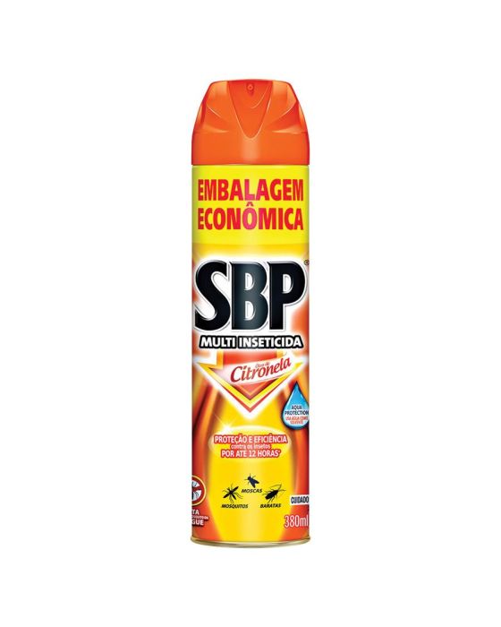 Características:Manter os ambientes sempre limpos e organizados e fazer a manutenção dos espaços de tempos em tempos é a melhor forma de manter insetos e outros bichos distantes da sua casa. Mas quando esses esforços não são suficientes a SBP te dá uma mãozinha! Com o Inseticida Aerossol Óleo de Citronela você se livra de mosquitos (inclusive o mosquito da dengue), pernilongos, muriçocas, carapanãs, moscas, baratas, aranhas e pulgas, como em um passe de mágica!Prático, esse inseticida protege por até 12 horas , oferecendo praticidade e proteção total. Esse inseticida da SBP mata os insetos proporcionando assim mais conforto para você e seus familiares. Além disso, por ser à base de água, esse produto não oferece nenhum risco para a saúde de humanos.Oferece eficiência com máxima proteção no extermino de qualquer tipo de inseto rasteiro e voador, sem fazer mal à sua saúde ou à dos animais domésticos, matando inclusive o mosquito da dengue e da febre amarela. - Conteúdo: 380 ml - Marca: Multi Citro - Com citronela em sua composiçãoModo de uso: Pulverize em todo o ambiente inclusive rodapés, frestas e esconderijos, feche as portas, janelas e entradas de ar, e deixe o produto agir no ambiente, * As especificações podem ser alteradas sem aviso prévio ** Imagem meramente ilustrativa.