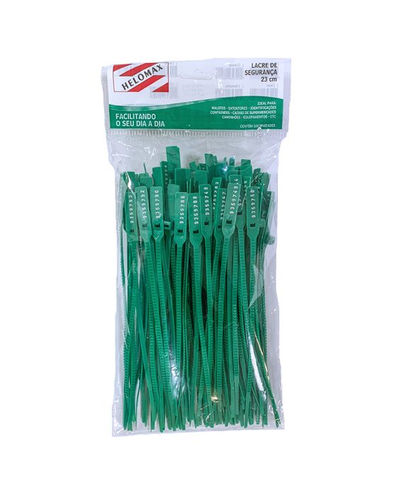 Caracteristicas:Lacre de segurança em nylon Helomax, com perfeito acabamento e alta tecnologia - Comprimento do lacre: 23 cm - Cor: Verde - Lacres numerados - Embalagem com 100 unidades - Ideal para malotes - Material: Nylon - Peso com Embalagem: 100 gr - Comprimento com Embalagem - 25cm - Altura com Embalagem - 1cm - Largura: 14 cm * As especificações podem ser alteradas sem aviso prévio ** Imagem meramente ilustrativa.